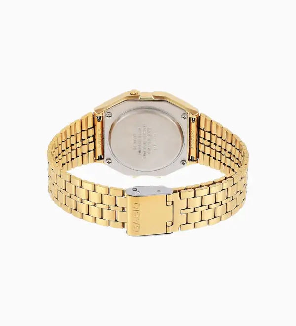 The case of the A159WGEA-1DF is square, made of resin and only 8.2 mm thick, decorated with a stainless steel gold-tone band and an adjustable clasp. Because it weighs only 44g, the unisex watch is very comfortable to wear all day long. Because it is water-resistant, it withstands everyday splashes, so it’s an excellent choice for everyday use.