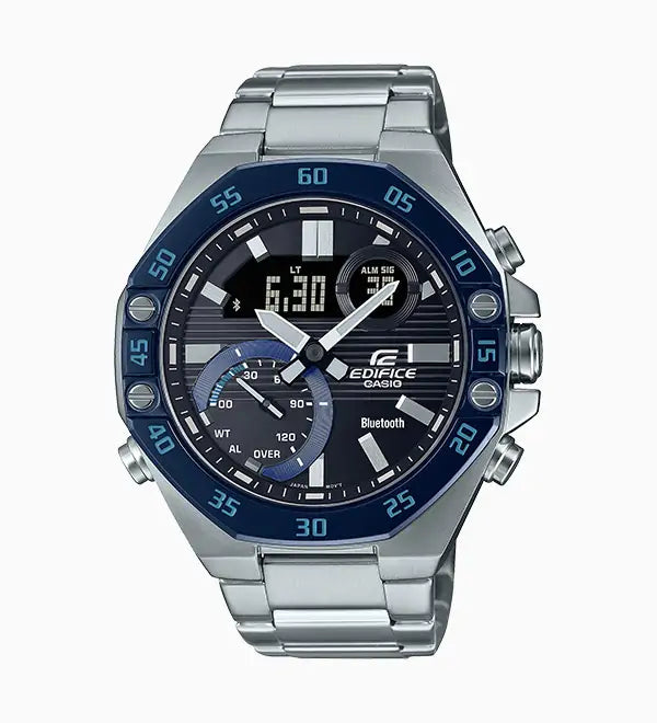 Tap into the EDIFICE Connected app via Bluetooth® for effortless, button-free watch operation and precision timekeeping, when your smartphone is nearby. Developed to meet the needs of F1™ racing teams, the Schedule Timer lets you conveniently schedule events via your smartphone and get notifications of start and end times. Equipped with LED light that illuminates with just a tilt of the wrist.