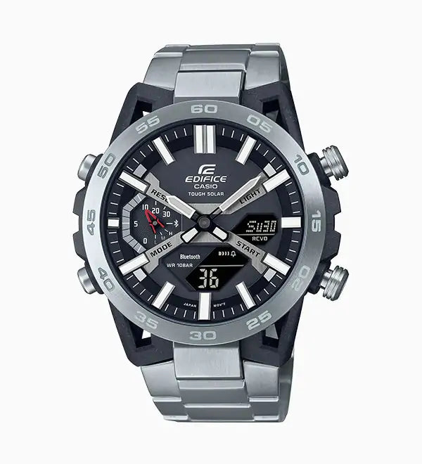 12/24-hour formatDay display (days of the week selectable in six languages)Hand shift feature (Hands move out of the way to provide an unobstructed view of digital display contents.)Regular timekeeping: Analog: 2 hands (Hour, minute (hand moves every 20 seconds)) 1 dial (countdown alert) Digital: Hour, minute, second, pm, date, dayProgress beeper on/off