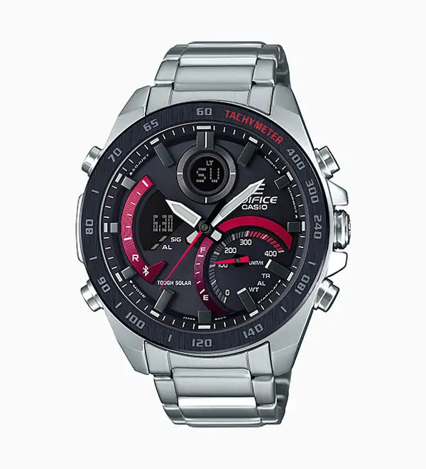 - Power Saving (display goes blank and hands stop to save power when the watch is left in the dark)