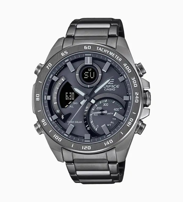 - Power Saving (display goes blank and hands stop to save power when the watch is left in the dark)