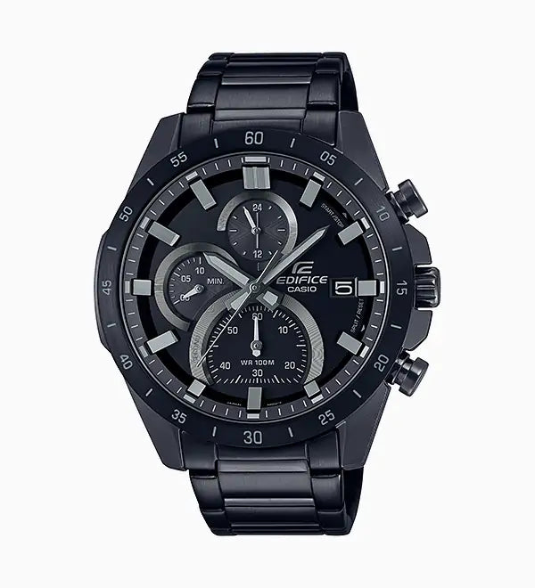 The EDIFICE Bold designed Chronograph Series is a collection of standard chronographs in large-size designs that are dynamic and sporty, with hefty, three-dimensional hour markers and inset dials.