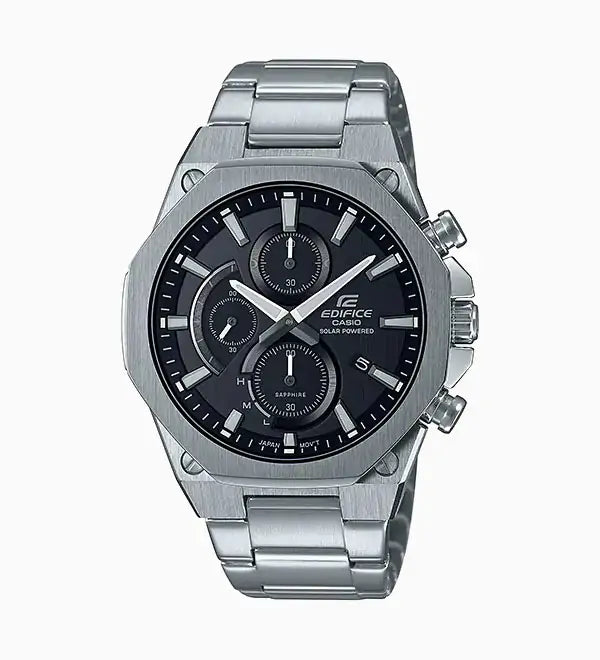 Regular timekeeping: Analog: 2 hands (hour, minute), 3 dials (seconds, stopwatch minutes, stopwatch seconds)Date display