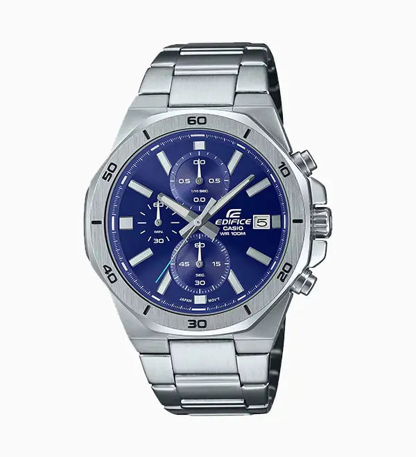 Make a dynamic, bold statement — a classic EDIFICE sports chronograph with an octagonal bezel in a solid, strong design.