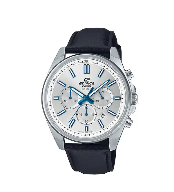 Analog: 3 hands (hour, minute, second), 3 dials (24-hour, stopwatch minutes, stopwatch seconds)
