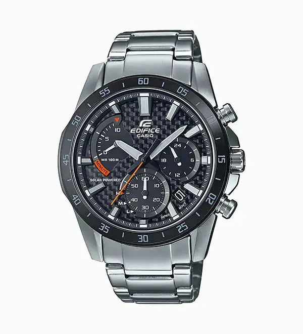 Regular timekeeping: Analog: 3 hands (hour, minute, second), 3 dials (24-hour, stopwatch minutes, stopwatch seconds)Date display