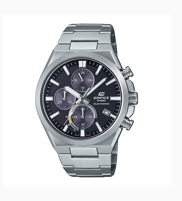Analog: 3 hands (hour, minute, second), 3 dials (24-hour, stopwatch minutes, stopwatch seconds)