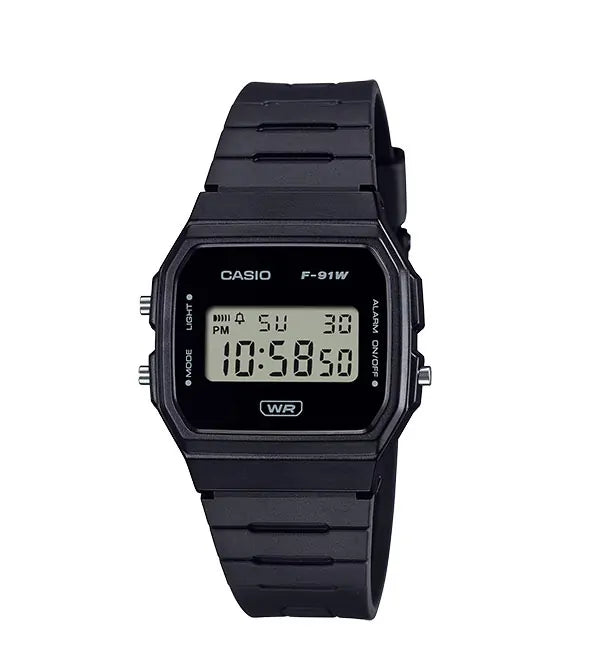 A favorite for decades — the slim, lightweight F-91 with digital LCD now with a minimalist face, fewer mode indicators, and more environmentally responsible materials. The band is made with bio-based resin, a material expected to help reduce environmental impact. Complete with date/day display, alarm, stopwatch and other handy functions, these watches are always at the ready.