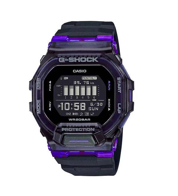 Bring a burst of vitality to your workouts with one of these brightly coloured sporty G-SHOCK watches from G-SQUAD. Splashes of vibrant green, orange and purple from today’s sports fashions accent the translucent bezel to take your fitness style to the next level.