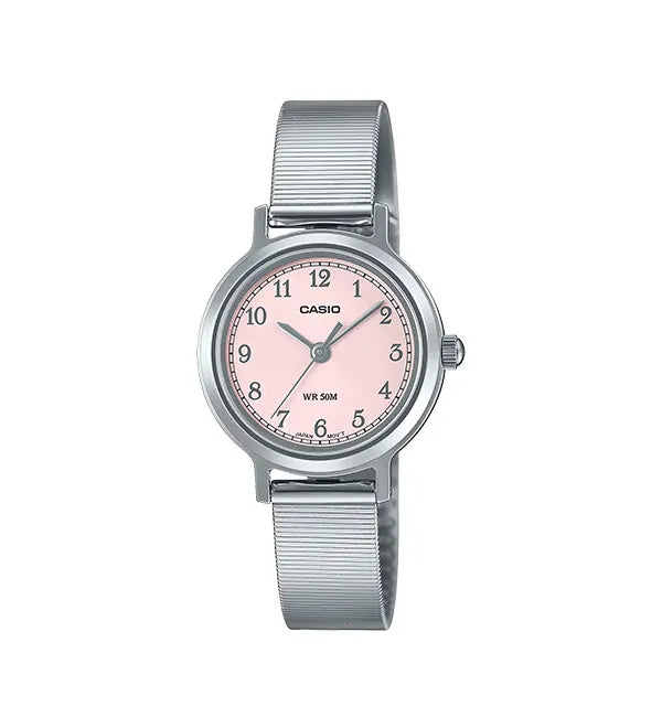 Indulge your taste for the vintage look with a compact analog watch featuring a retro-style metal bracelet band. Water resistance up to 50 meters frees you from worry, even in sudden rain.