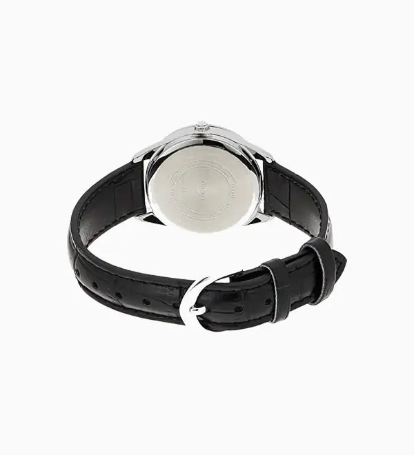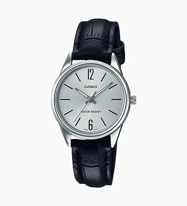 Casio LTP-V005L-7A Women's Standard Analog Black Leather Band Silver Dial Watch
