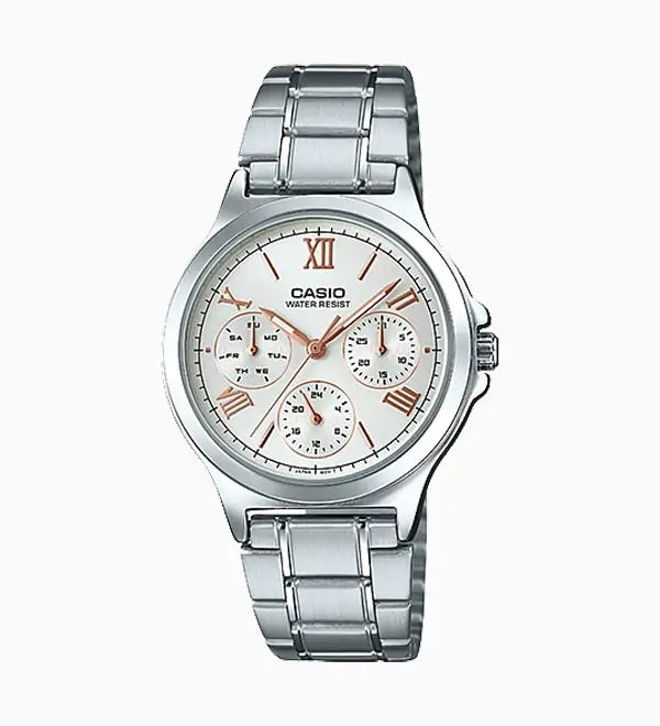 Analog: 3 hands (hour, minute, second), 3 dials (date, day, 24-hour) - Accuracy: ±20 seconds per month