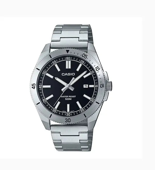o sporty and stylish, on or off the clock — analog timepieces designed around the classic look of hour, minute and second hands. Water resistance up to 50 meters frees you from worry, even on rainy days. The easy-read date display at the 3 o’clock position adds an extra handy touch.