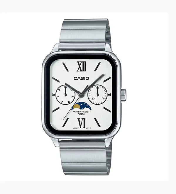 To the moon and back — track the lunar phases with striking analog timepieces featuring multiple inset dials. These timepieces bring together stylish fashion and classic lunar design. Take your pick and stay on track whether you’re on or off the clock. Water resistance up to 50 meters frees you from worry when washing up or caught in the rain.