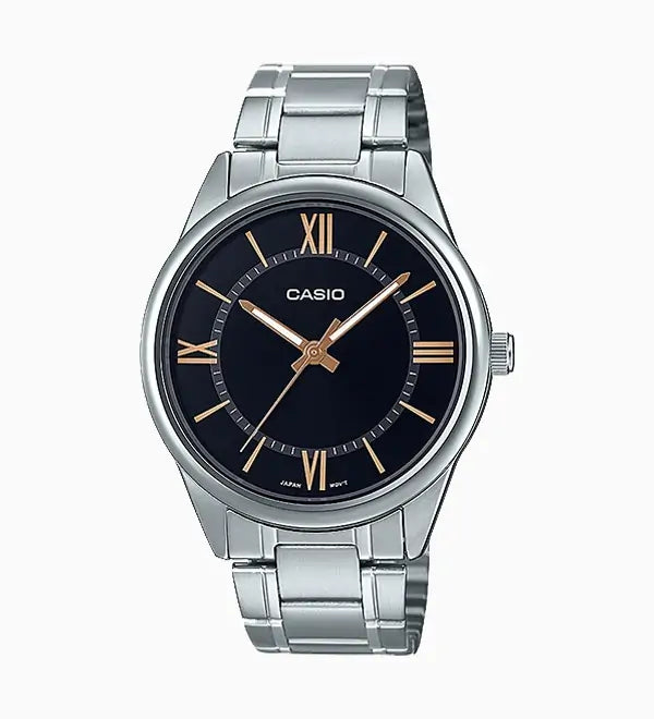 Casio MTP-V005D-1B5 Men's Standard Stainless Steel Roman Black Dial Analog Watch