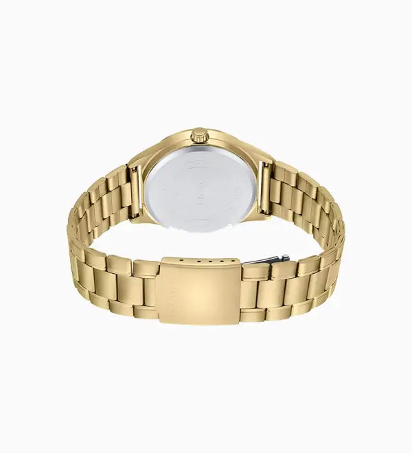 - Case and bezel material: Gold tone