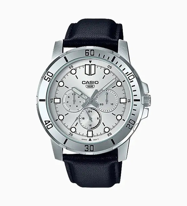 Analog: 3 hands (hour, minute, second), 3 dials (date, day, 24-hour) - Accuracy: ±20 seconds per month