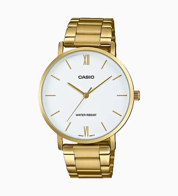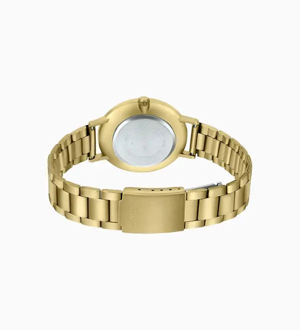 - Case and bezel material: Gold tone